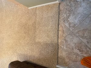 Our repair process started by carefully removing the compromised carpet while preserving as much of the surrounding area as possible. Using spare carpet provided by the homeowner, our technician cut and prepared a replacement piece that would match the existing carpet pattern and thickness. The new section was permanently installed using professional-grade adhesives, ensuring it blended seamlessly with the remaining flooring and maintained a smooth transition to the adjacent tile.
